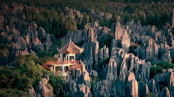 In different parts of the world, karst rock formations surprised by capriciously shapes sculpted by thousands of years of erosion. Shilin County, southwest China, the rocks seem to spring from the earth creating the illusion of a stone forest.